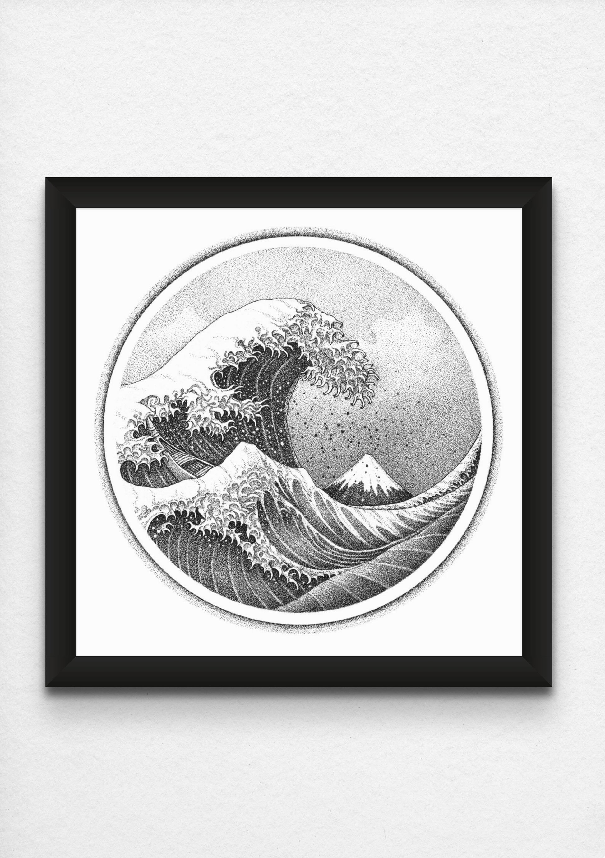 The famous great wave of Kanagawa by the Japanese artist Hokusai remixed by me in this stippling version of the masterpiece but instead of paint, this classic has now been remade with my noticeable black and white dot style.
