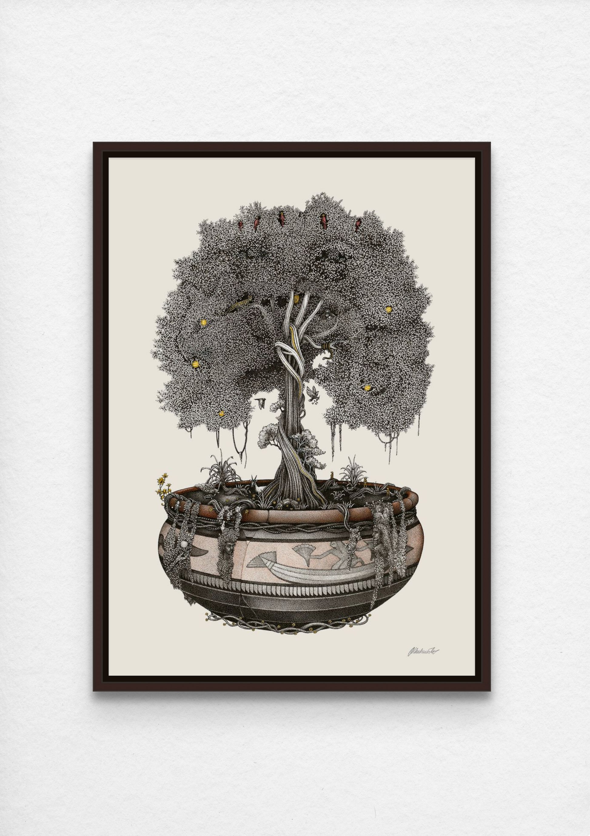 'The Mortali tree' stippling ink artwork by Olly Hunter Wilson, deriving from the ancient idea 'The tree of life'