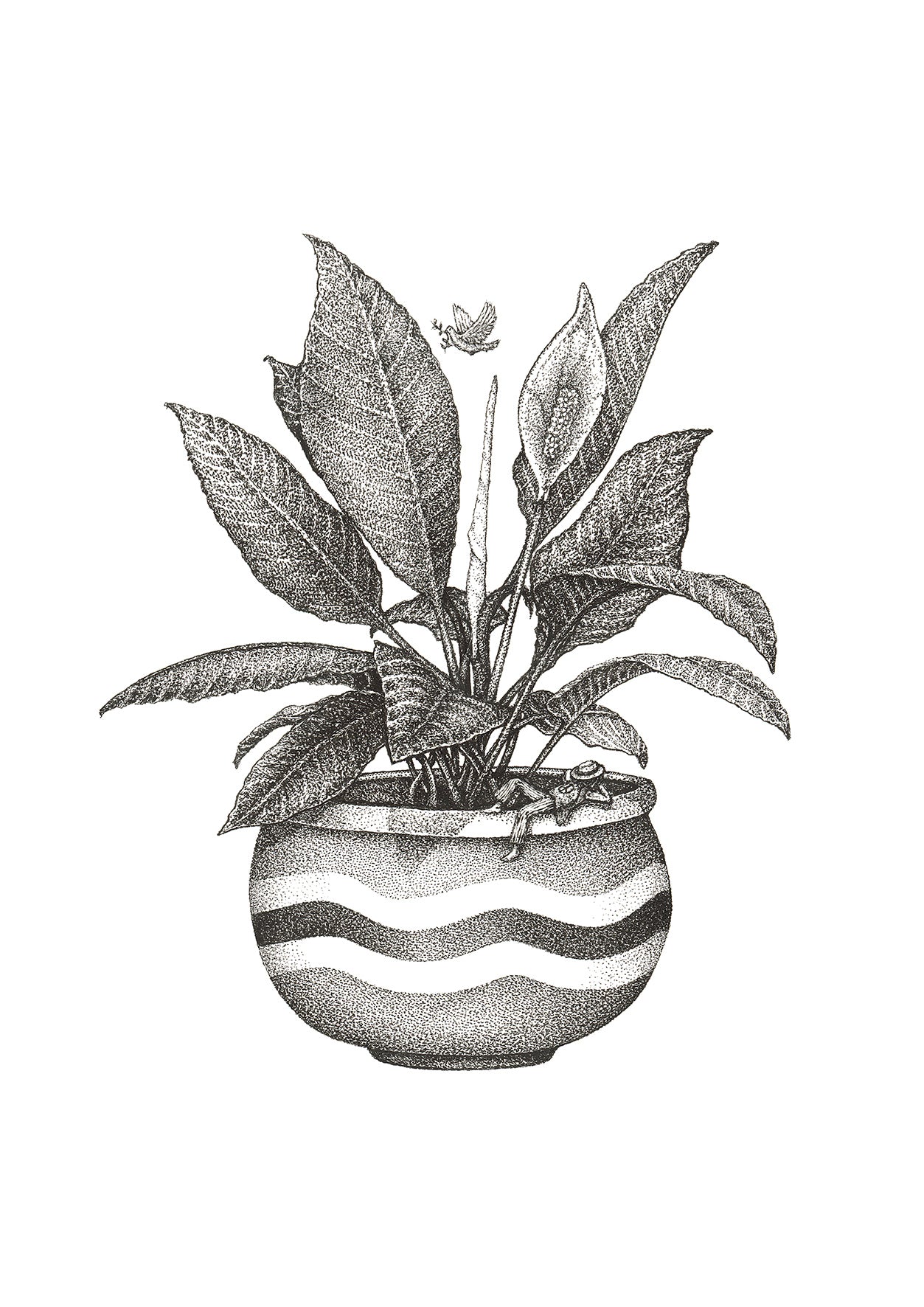 The famous and most loved tranquil peace Lilly with its iconic symbols of peace hidden amongst the leaves, this artwork brings calm energy into any space.